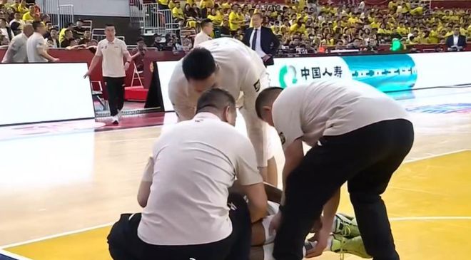 在首节比赛刚进行3分半钟,北京首发中锋所罗门就在篮下进攻时,不慎落地崴脚痛苦蜷缩在地板上捂着脚踝处,一众队友也是赶紧上前查看情况。所罗门随后单脚蹦着下场,在场边接受治疗处理。